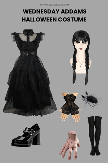 Halloween Outfit Idea: Wednesday Addams Black Dress, Braided Wig & Gothic Accessories